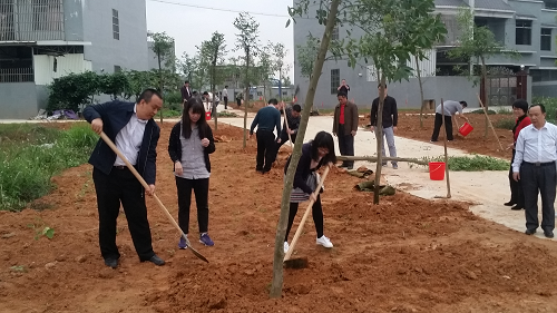 植樹現(xiàn)場(chǎng),大家分工協(xié)作,揮楸挖坑,填坑培土,踩緊踏實(shí),各個(gè)環(huán)節(jié)細(xì)致認(rèn)真,一氣呵成。在一個(gè)多小時(shí)的植樹過程中,共種植了50顆風(fēng)景樹。放眼望去,一株株新植樹苗昂然挺立,大大提升了農(nóng)場(chǎng)小區(qū)文化廣場(chǎng)的“顏值”。漆處長(zhǎng)一行表示,通過活動(dòng),既有效改善了農(nóng)場(chǎng)生態(tài)環(huán)境,又加強(qiáng)了農(nóng)場(chǎng)植綠護(hù)綠的濃厚氛圍,共同為踐行“綠水青山就是金山銀山”的環(huán)保理念貢獻(xiàn)自己的一份力量。
