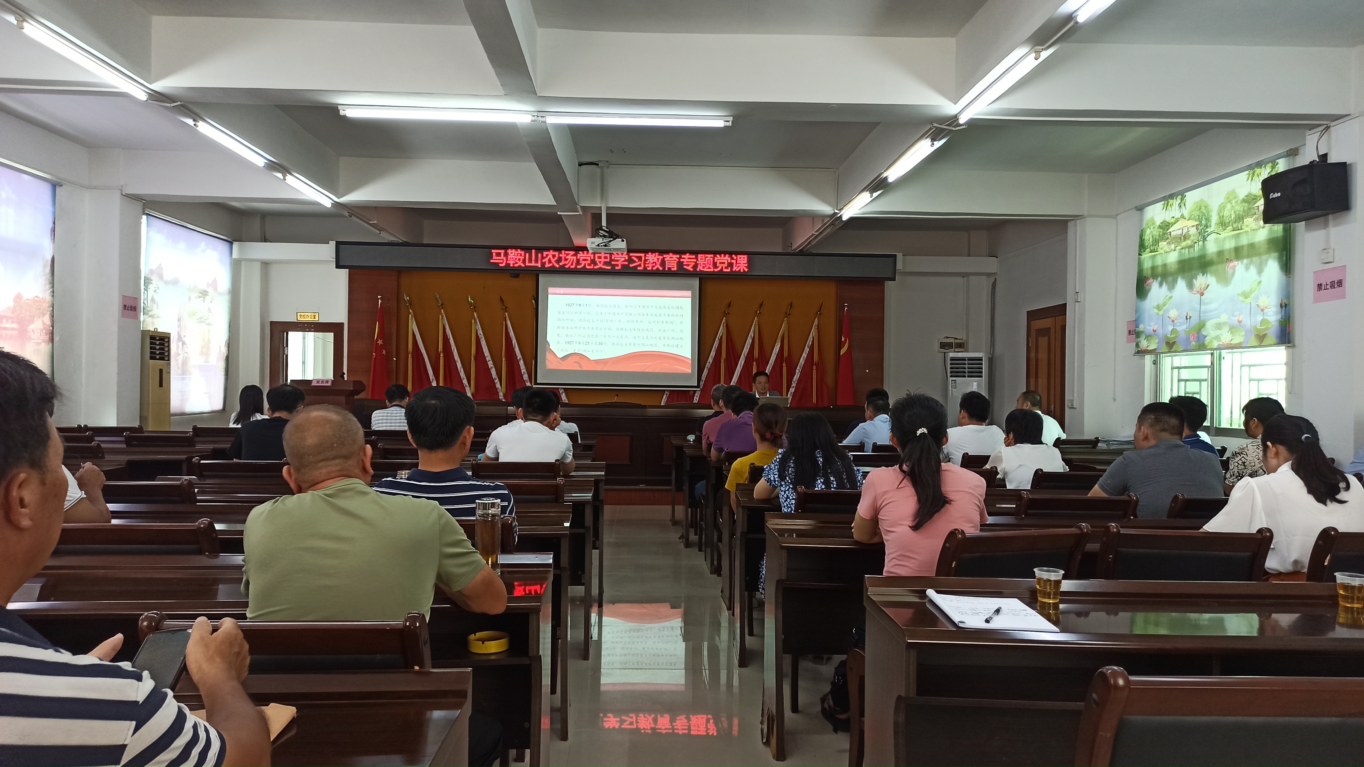 7月12日下午,揭陽農(nóng)墾集團(tuán)有限公司(農(nóng)墾局)黨組成員、紀(jì)檢組長、工會(huì)主席林小松到馬鞍山農(nóng)場講黨史學(xué)習(xí)教育專題黨課,揭陽農(nóng)墾集團(tuán)公司紀(jì)檢監(jiān)察室相關(guān)人員、農(nóng)場全體機(jī)關(guān)干部、各村(居)管區(qū)支部書記等40多人參加專題黨課。黨課由該場黨委書記黃七星主持。