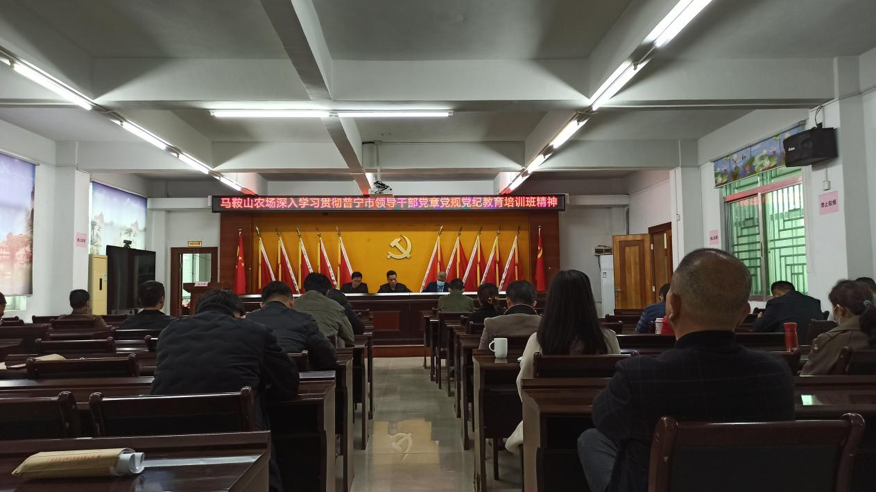 12月20日下午,馬鞍山農(nóng)場召開深入學(xué)習(xí)貫徹普寧市領(lǐng)導(dǎo)干部黨章黨規(guī)黨紀(jì)教育培訓(xùn)班精神會議。農(nóng)場機(jī)關(guān)全體干部,各村(居)管區(qū)書記參加了會議。會議由黨委書記黃七星主持。
