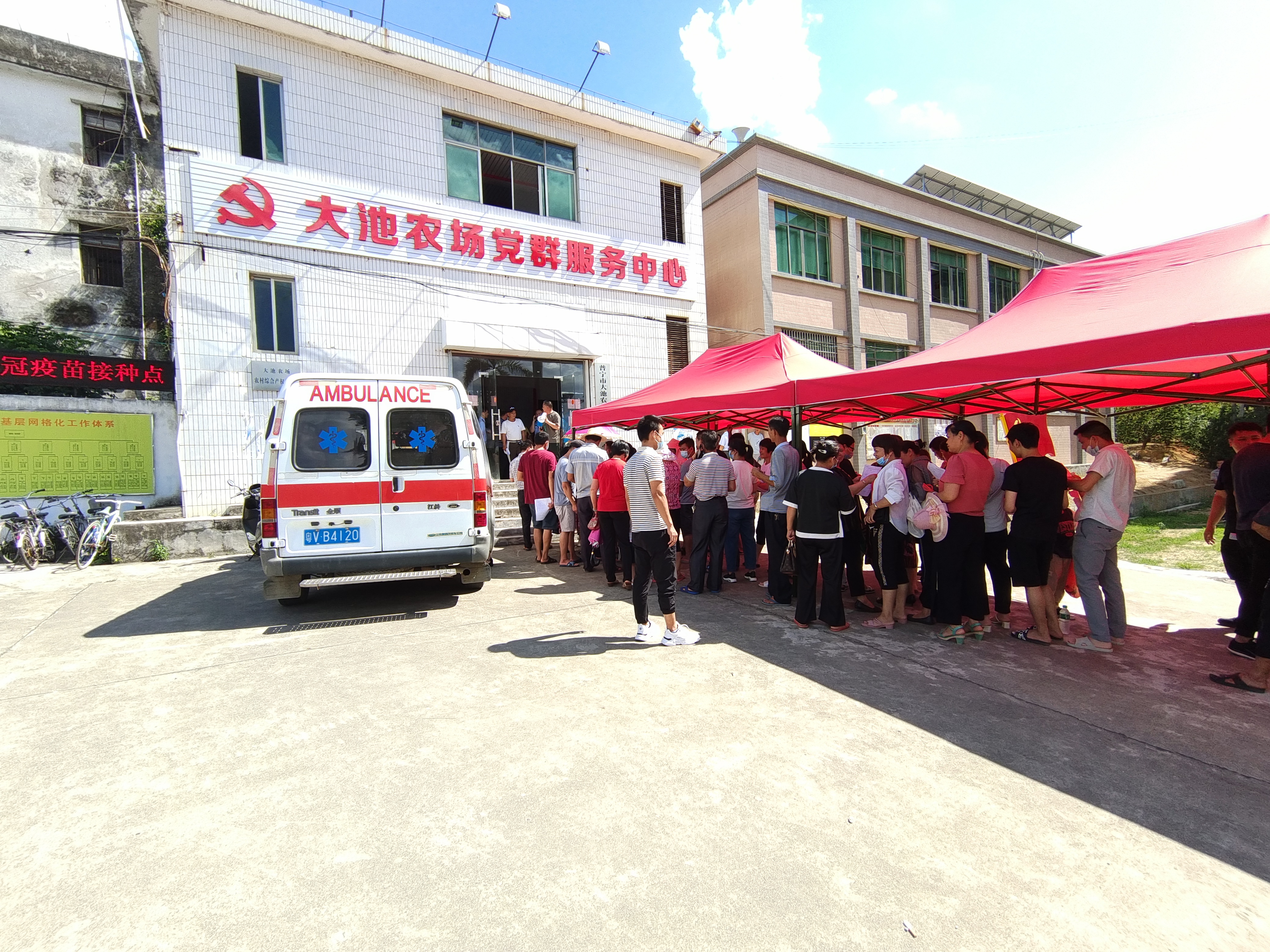 5月28日下午2:30,各村(社區(qū))前來(lái)接種疫苗的農(nóng)場(chǎng)居民已排起了長(zhǎng)龍,大家按照農(nóng)場(chǎng)統(tǒng)一組織,進(jìn)行領(lǐng)表填寫(xiě)、領(lǐng)號(hào)等候、有序進(jìn)行疫苗接種,很快就完成了當(dāng)天的接種數(shù)量。